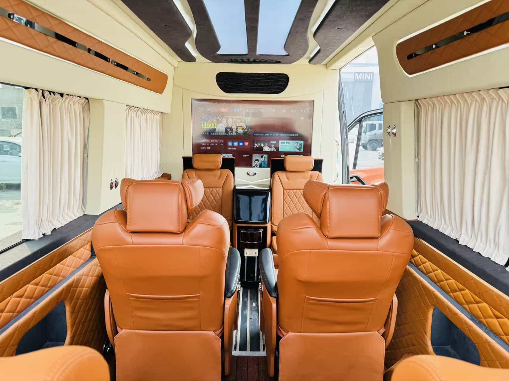 Step inside, and the Jun Tian custom business interior transforms the vehicle into a comfortable and functional executive cabin. The 7-seat layout is thoughtfully designed to provide ample legroom and headroom, ensuring that every passenger enjoys a relaxed journey. Premium seating, upgraded materials, and a refined cabin environment make it ideal for business receptions, airport transfers, or long-distance travel.