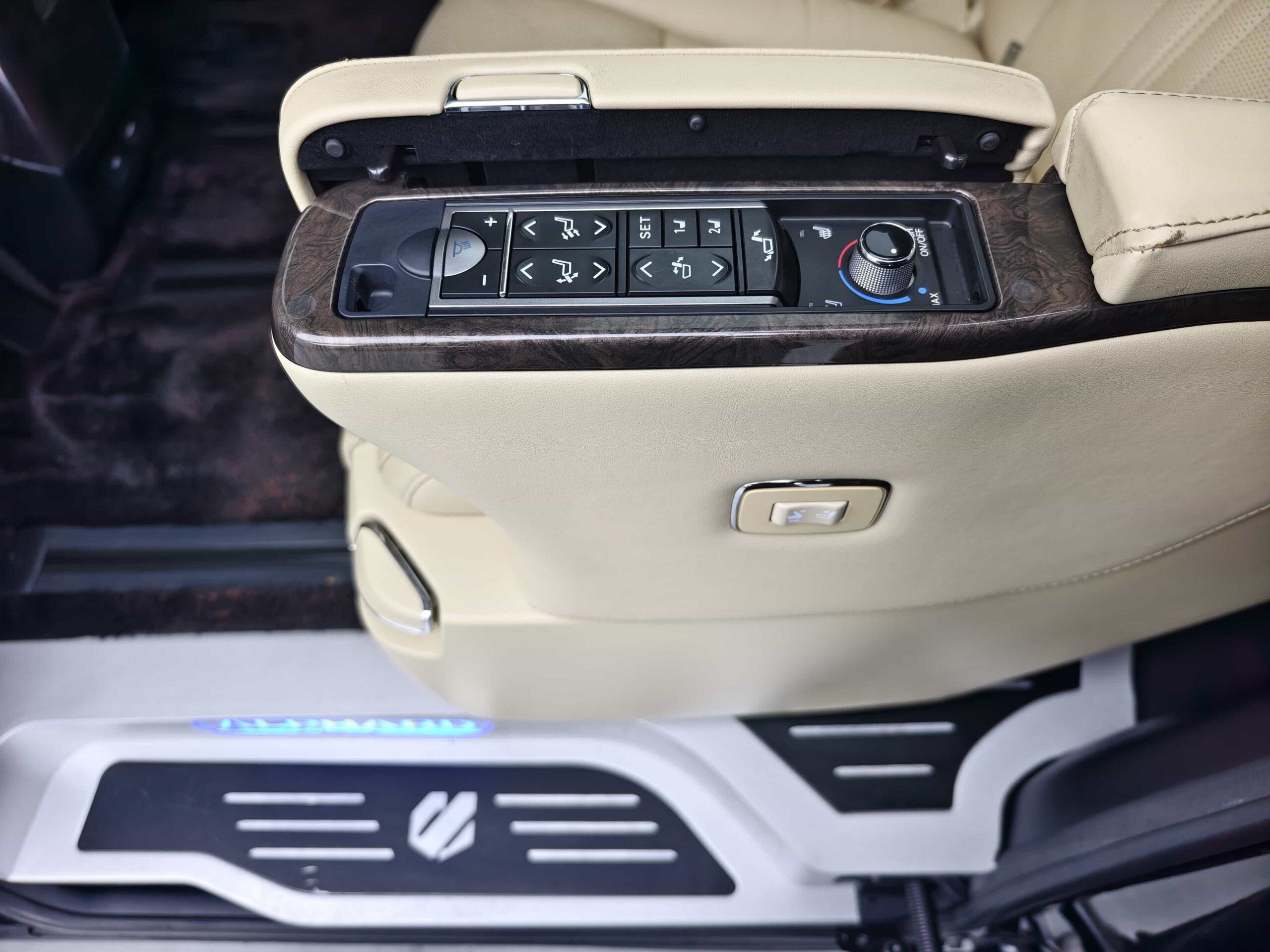 7-seat executive layout, premium interior materials, multifunction steering wheel, advanced entertainment display, rear independent climate control, power sliding doors, alloy wheels, enhanced safety features.